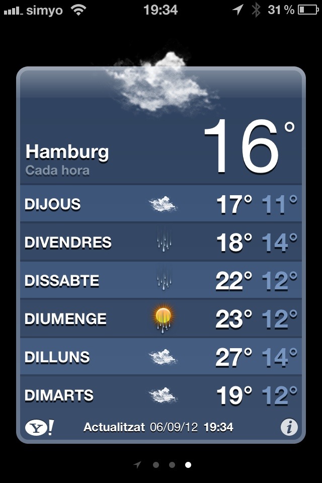 Hui, que ha eixit un dia plujós, Cristina ha anat amb el xiquets a comprar i pegar una volta xicoteta. Ens hem comprat un paraigües, al que segur que li treurem molt de profit. Dues frases del gerent, que ens ha dit mentre ens duia a casa: si en Hamburg deixarem de fer coses a l’aire lliure per la pluja, no faríem res. I també: hi ha un dit alemany que diu que no hi ha mal temps, sinó mal abric.